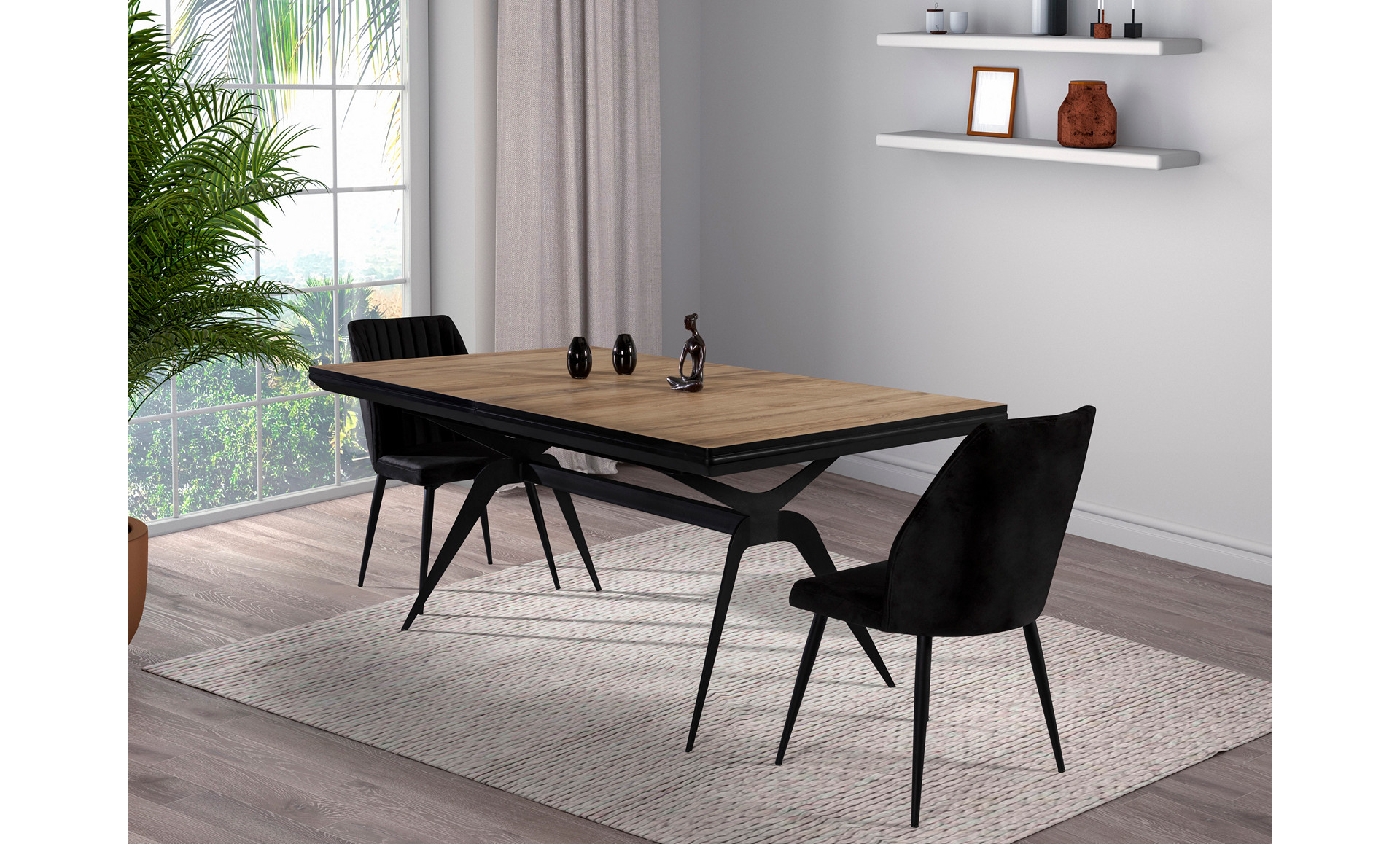 משטח עץ דמוי שיש / אלון ברמת גימור גבוהה, רגלי מתכת בצבע שחור